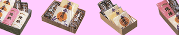 なんば焼き、卵黄入なんば焼き、ごぼう巻き、扇形地紙の